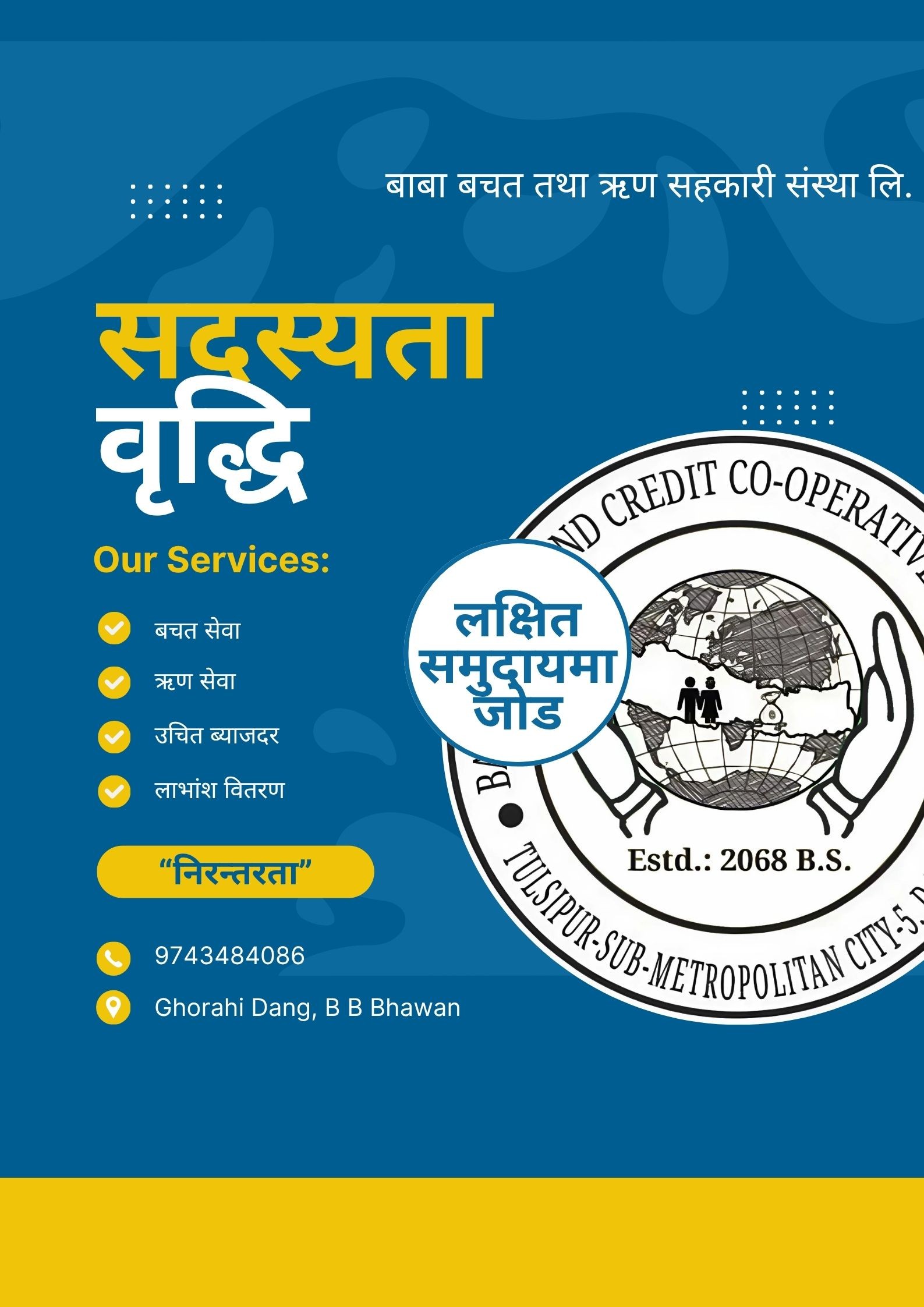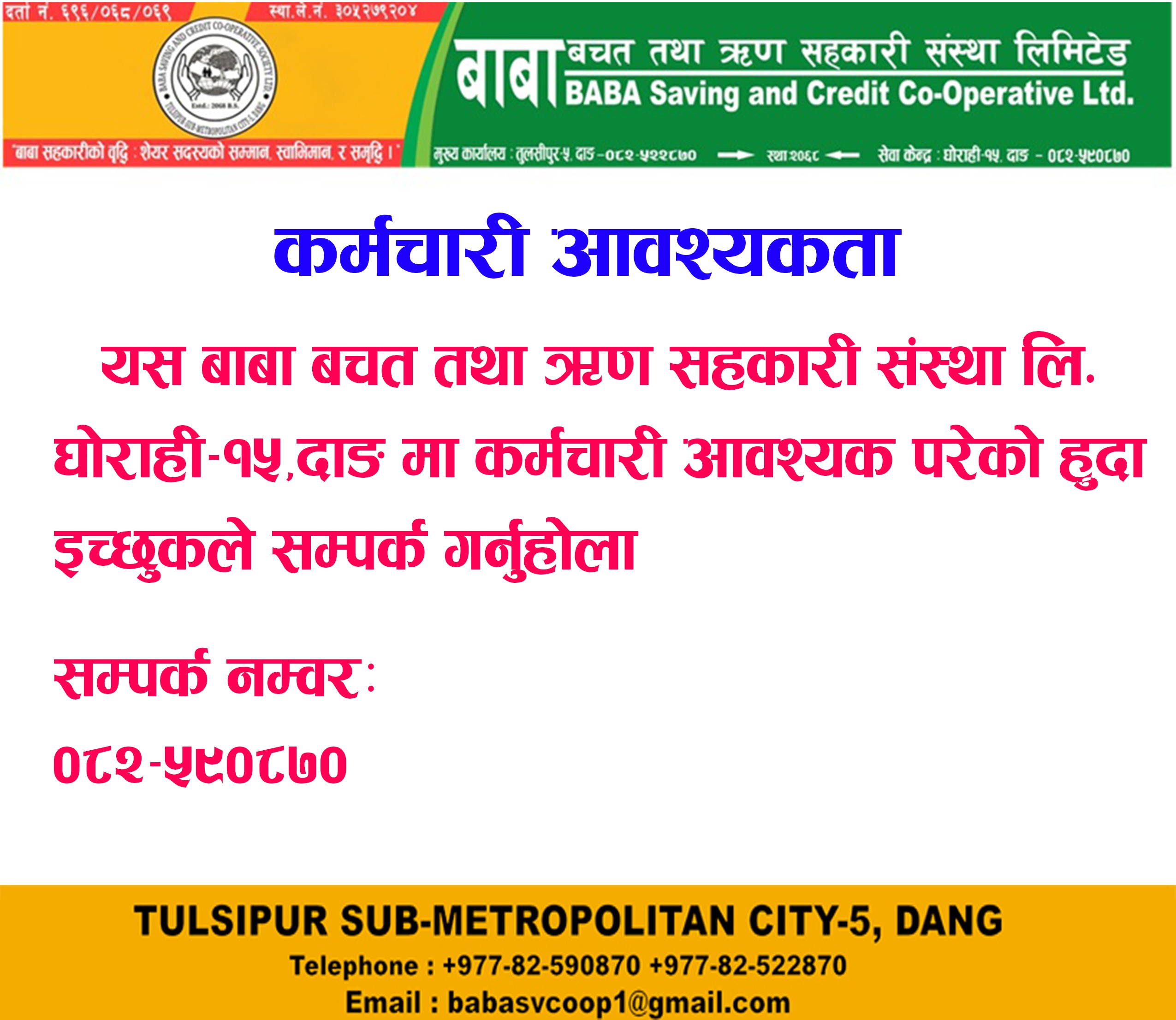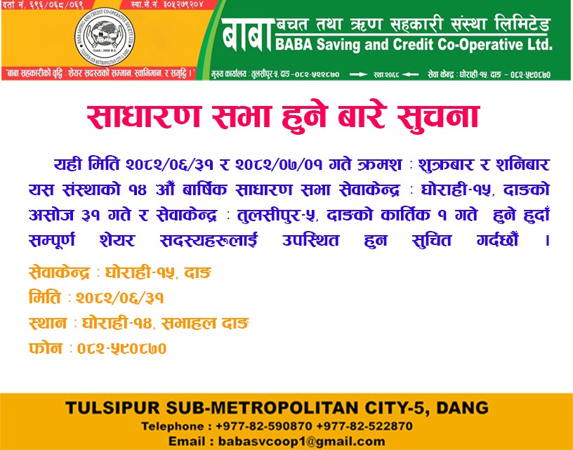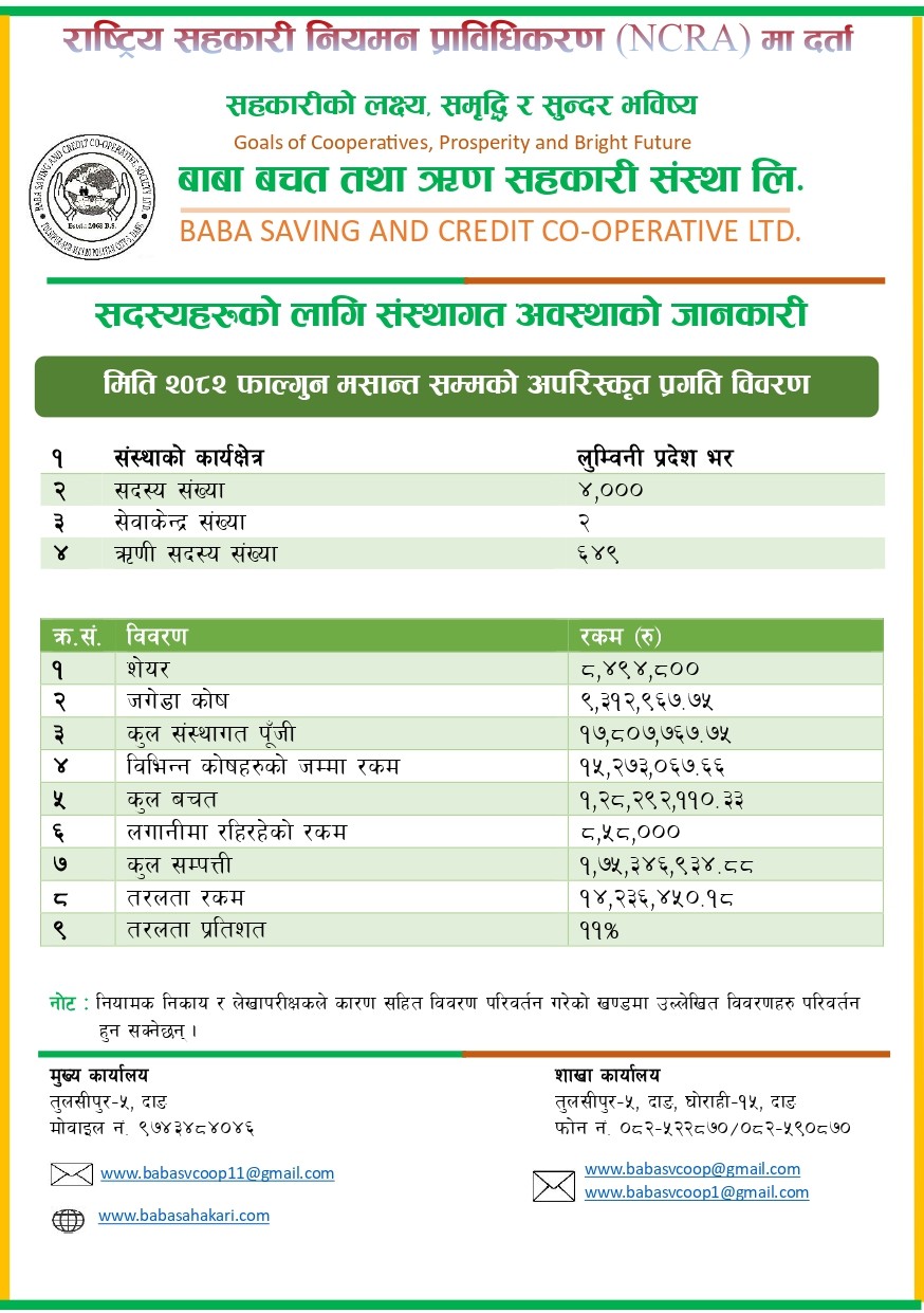 "Baba Savings and Credit Cooperative Ltd." was established through the initiative of Mr. Nirmal K...